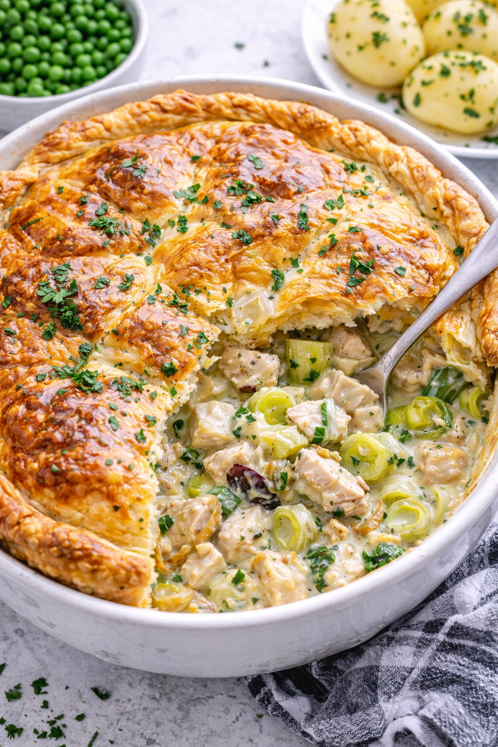 Mary Berry-Style Chicken & Leek Pie Description This Chicken & Leek Pie (inspired by Mary Berry’s classic style) is the ultimate comfort dish, featuring tender chunks of chicken and soft, sweet leeks in a rich, creamy sauce, all topped with golden, flaky puff pastry. It’s hearty, warming, and perfect for family dinners or cozy weekends. … Read more