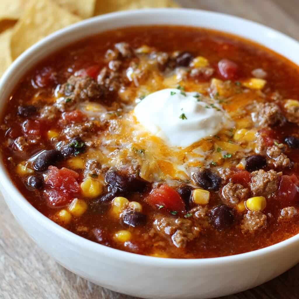 This one-pot taco soup is the ultimate comfort meal that’s both easy and flavorful. Ground meat, beans, corn, and tomatoes simmer together with taco spices for a dish that’s warm, filling, and satisfying. Quick to prepare, customizable, and perfect for weeknight dinners, it’s also great for meal prep and freezes well. Add your favorite toppings and enjoy a bowl of hearty, zesty soup anytime.