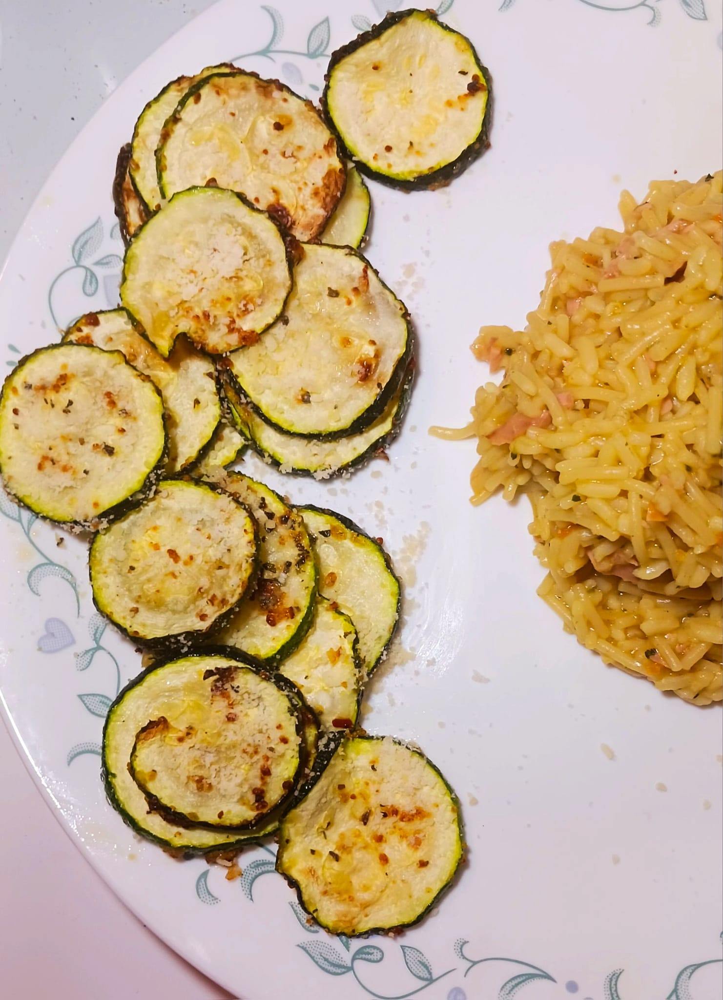 - • Put the zucchini in a big bowl. Use anything from oil to 2 tablespoons of Parmesan cheese to season the slices. Toss and coat all over.