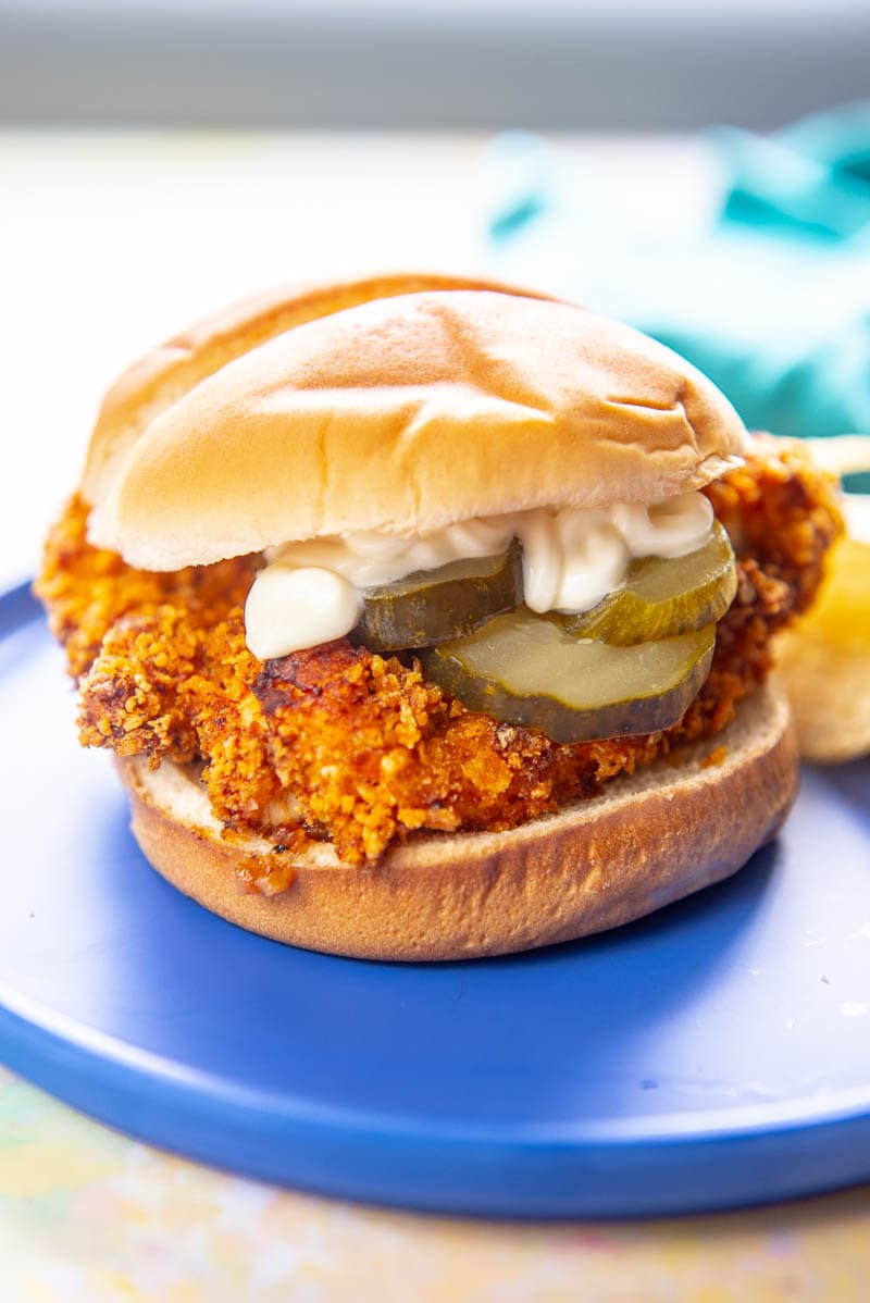 Lightly toast buns in air fryer or toaster while chicken finishes cooking.