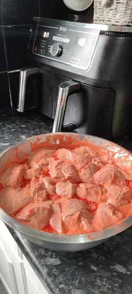 Place all of your chicken pieces in a flat plate and thoroughly coat them with the marinade. Ensure that all cuts and edges are covered.