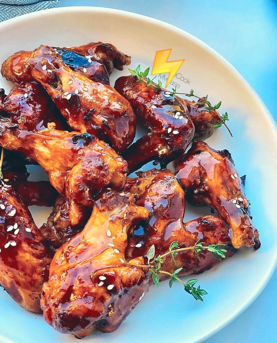 Asian Sticky Wings: Toss in soy sauce, honey, ginger, garlic, and a touch of chili.
