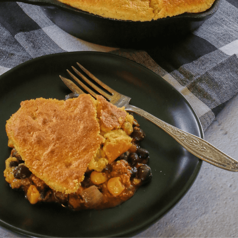 - Heat oil over medium high heat in a medium oven proof skillet. Add onion and cook for 3-4 minutes or until golden brown. Add ground beef, chili powder and salt. Cook for 5-8 minute until meat is brown and no longer pink. Stir in tomato sauce, black beans and corn. Bring to a boil and simmer for 8-10 minutes. Reserve.