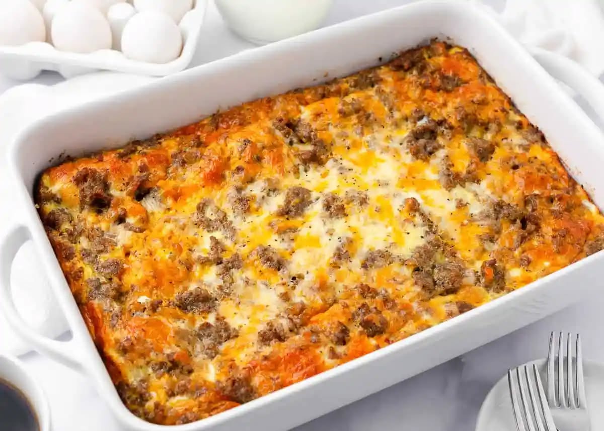 This air fryer breakfast casserole is a flaky, cheesy, and hearty way to start the day. It layers buttery crescent roll dough with eggs, sausage or bacon, cheese, and your favorite veggies, all cooked perfectly in the air fryer. It’s like a breakfast sandwich meets quiche — all in one crispy, golden bite.