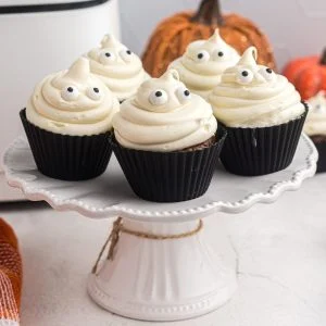 - To top the cupcakes with your ghost frosting, add vanilla or buttercream on cupcake using a frosting bag. Going in a continual circular motion, continue to make a full circle, until you have a small mound of frosting, to create a ghost form.