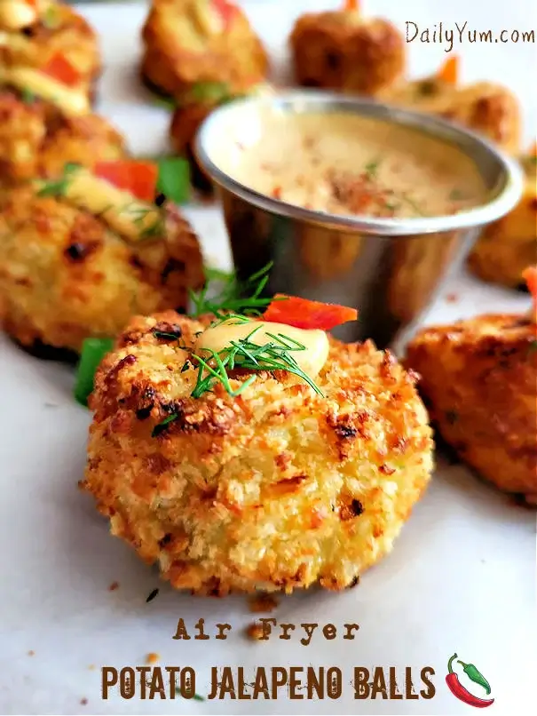 - Carefully place potato jalapeno balls into air fryer basket/tray. Do not overcrowd, give them some space.