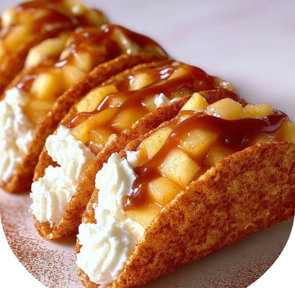 Imagine biting into a warm, cinnamon-sugar coated taco shell filled with creamy cheesecake and topped with caramelized apples. That’s exactly what you get with these Apple Cheesecake Tacos! They’re a playful twist on traditional cheesecake and apple pie — handheld, crunchy, creamy, and bursting with fall flavors. Perfect for parties, family gatherings, or just when you want a dessert that wows without being overly complicated.