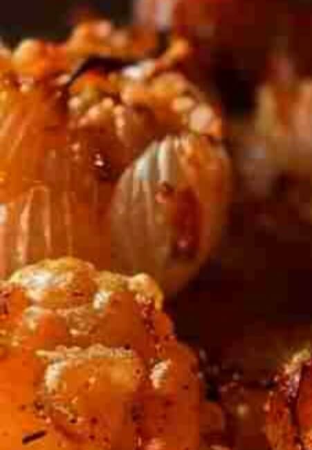 - Peel the onions and cut off the top (not the root end). Carefully make several cuts from the top of the onion down to about 1/2 inch from the root end, creating “petals.” Be careful not to cut all the way through.