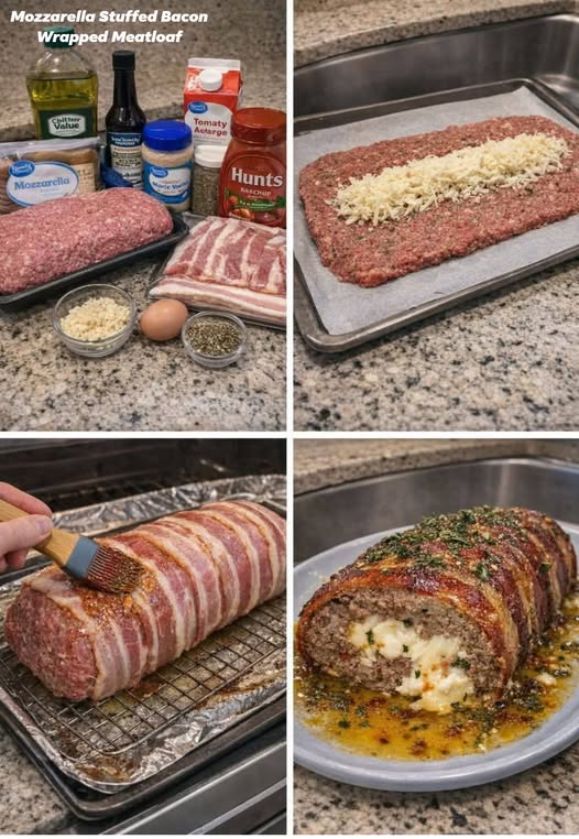 This Bacon-Wrapped Stuffed Mozzarella Meatloaf is the ultimate comfort food upgrade. Juicy, well-seasoned ground beef is rolled around melty mozzarella, wrapped in smoky bacon, and brushed with a sweet and savory glaze. When sliced, the gooey cheese center creates a beautiful presentation that’s perfect for family dinners, weekend gatherings, or even holiday meals. It’s hearty, satisfying, and surprisingly simple to prepare.