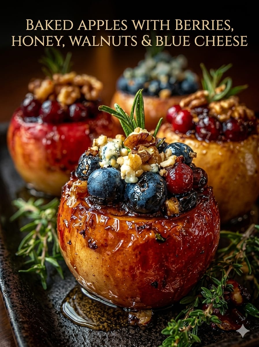 This baked apples recipe is a beautiful mix of sweet, tangy, creamy, and crunchy in every bite. Juicy apples are filled with fresh berries, toasted walnuts, and rich blue cheese, then drizzled with honey and baked until perfectly tender. The result feels both rustic and elegant, making it ideal for cozy evenings or as a standout dessert for guests. The contrast of warm fruit, melted cheese, and crisp nuts creates a balanced dish that’s simple yet impressive.