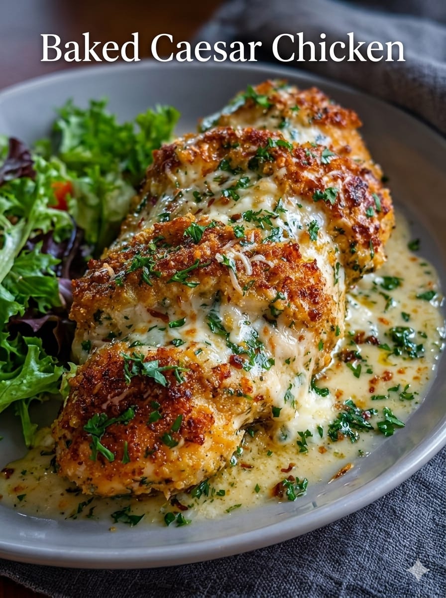 Baked Caesar Chicken is a rich, creamy, and incredibly satisfying dish that transforms classic Caesar salad flavors into a comforting oven-baked meal. Juicy chicken breasts are coated in a creamy Caesar dressing mixture, layered with Parmesan cheese, and finished with a golden, crispy topping. It’s the kind of recipe that feels indulgent but is surprisingly simple to prepare. Perfect for weeknight dinners or when you want something hearty without too much effort, this dish delivers big flavor with minimal prep.