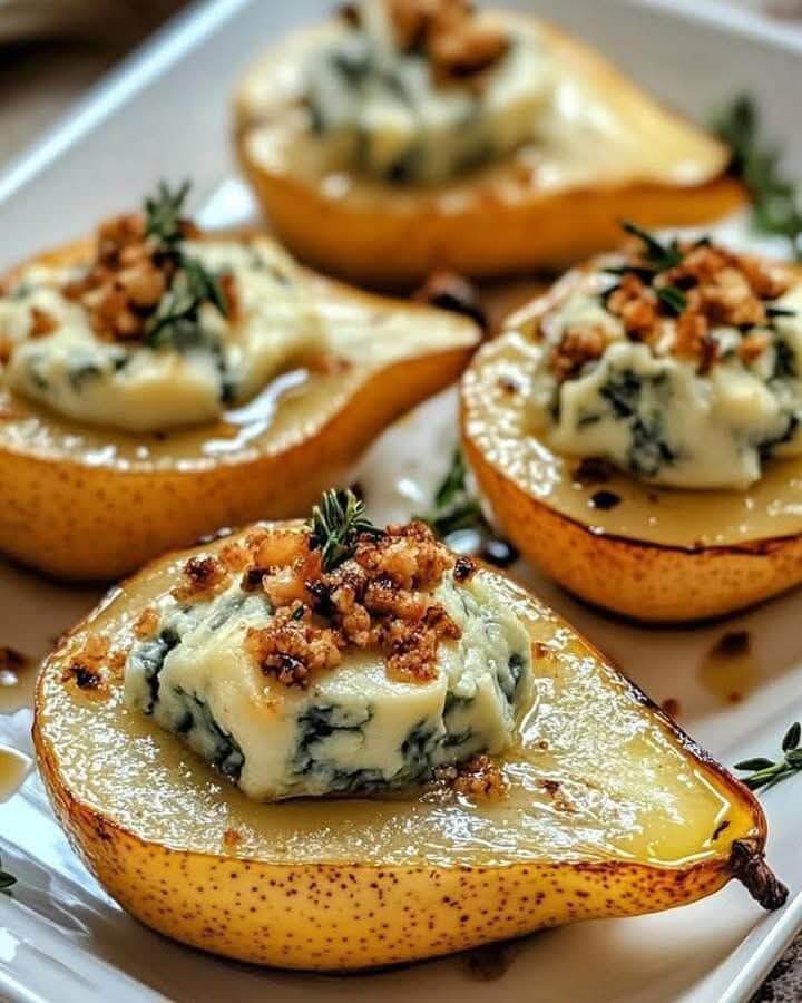This dish makes a delightful appetizer sophisticated side or even a light dessert for those who enjoy the sweet-savory combo. The tender baked pears pair perfectly with creamy blue cheese and the crunch of toasted walnuts all lightly drizzled with honey or balsamic glaze for a rich finish. Ideal for dinner parties holidays or date nights.