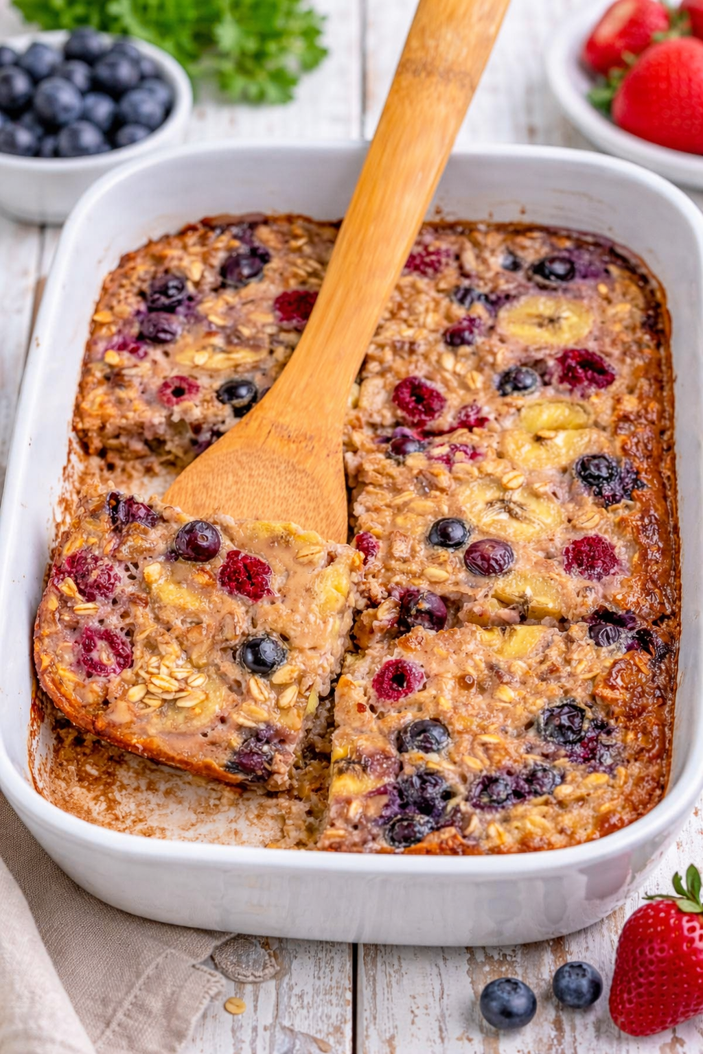 This Baked Protein Oatmeal is the perfect clean-eating breakfast—warm, hearty, and naturally sweetened with fruit. Packed with protein, fiber, and wholesome ingredients, it’s soft and cake-like inside with a lightly golden top. Ideal for meal prep, it keeps you full, energized, and ready to start your day right.