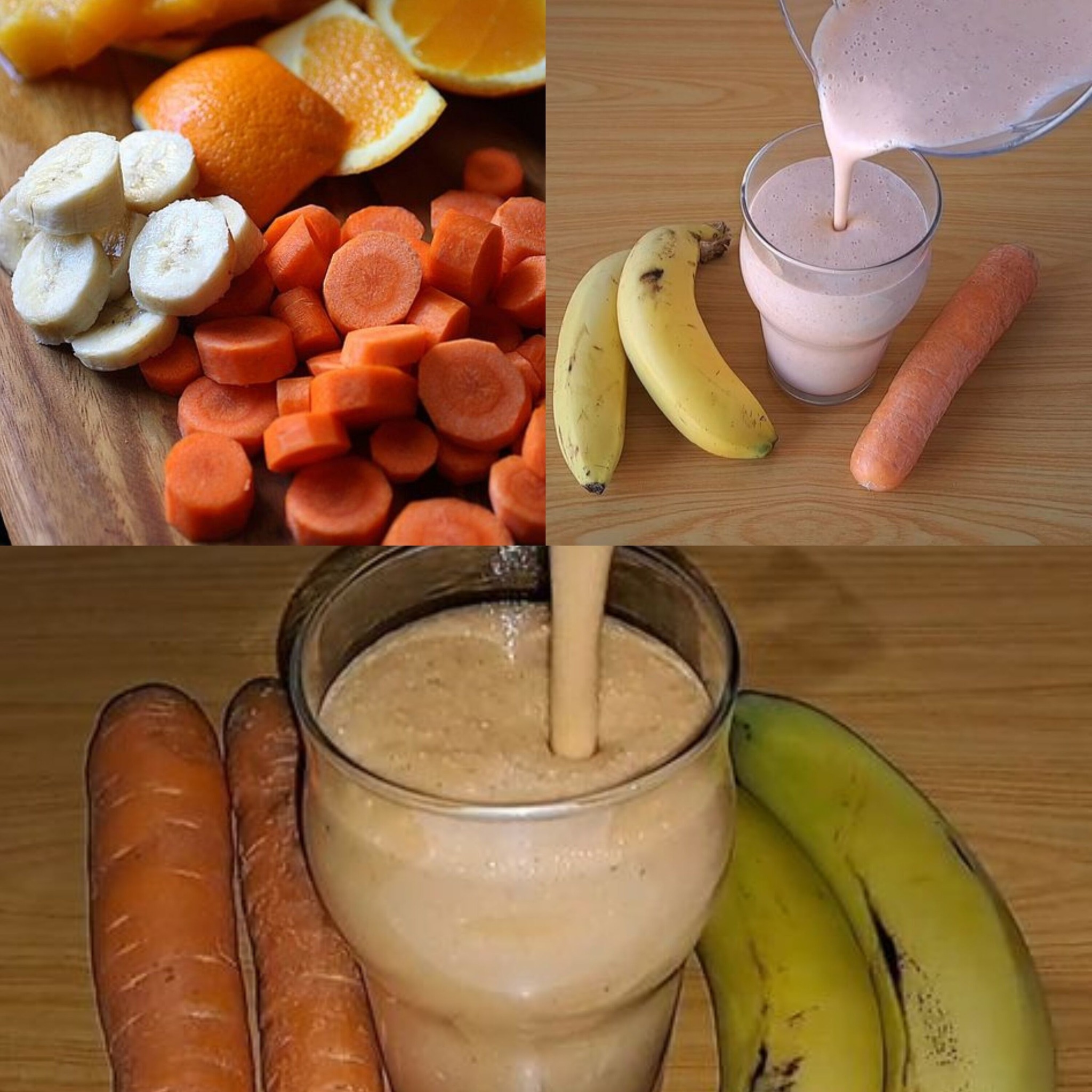 - In a blender, combine the banana, carrot, water or milk, cinnamon, and optional honey.