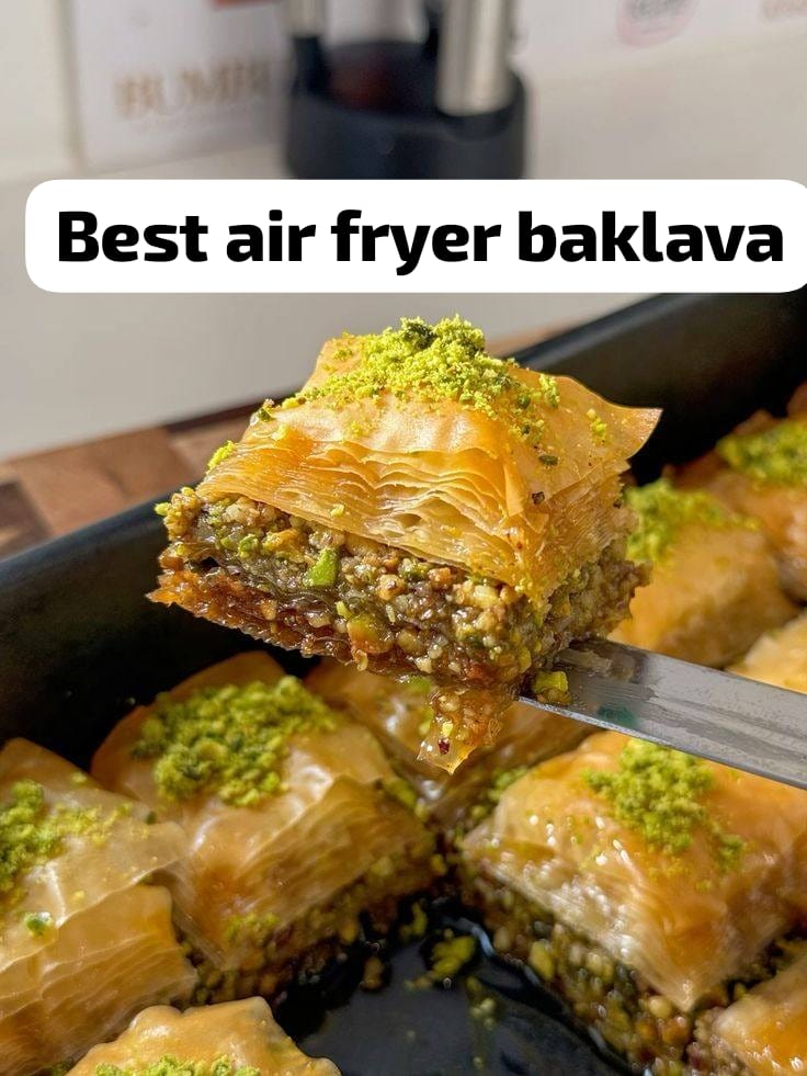 Air fryer Baklava is one of the best-ever air fryer desserts you’ll come across! Layers of crispy filo are filled with assorted nuts and topped with salty-sweet syrup. With this easy recipe, you can make perfect homemade baklava.