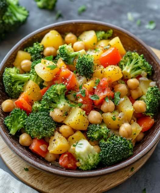 Looking for a light yet satisfying meal? This Broccoli and Chickpea Salad is a vibrant, nutrient-packed dish that’s both delicious and easy to prepare. With crunchy broccoli, protein-rich chickpeas, juicy tomatoes, and tender potatoes, this salad offers the perfect balance of flavors and textures. Tossed in a zesty lemon-garlic dressing, it’s refreshing, wholesome, and full of Mediterranean-inspired goodness. Whether you’re enjoying it as a side dish, a meal prep lunch, or a quick dinner, this salad is a great way to nourish your body while keeping things simple and flavorful!
