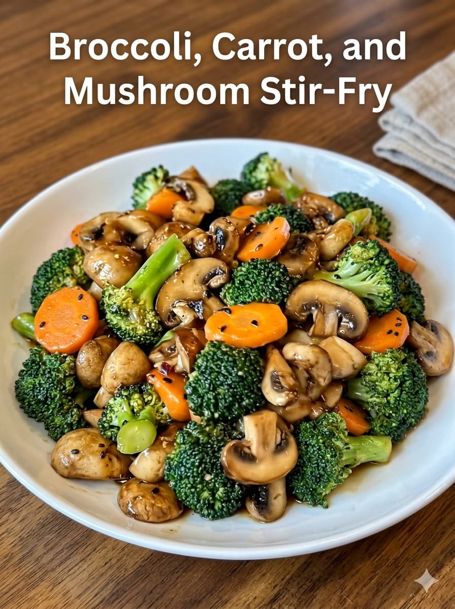 Broccoli, Carrot, and Mushroom Stir-Fry is a quick, colorful, and nutrient-packed dish that brings together crisp vegetables, savory mushrooms, and a glossy umami sauce. It’s the kind of recipe you can make in under 30 minutes, yet it tastes like something from your favorite Asian restaurant. The combination of garlic, ginger, soy sauce, and sesame oil creates a deep, balanced flavor, while the vegetables stay vibrant and slightly crisp. Perfect as a side dish or served over rice or noodles for a complete meal.