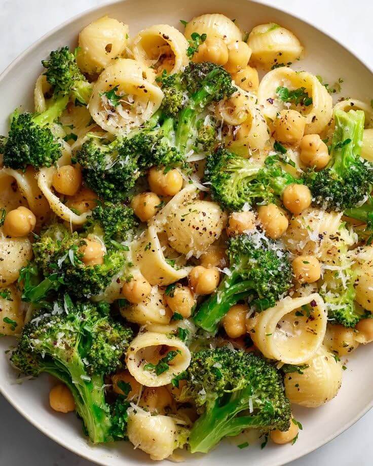 This simple yet delicious pasta is packed with garlicky olive oil flavor, tender broccoli, and protein-rich chickpeas. It’s light, healthy, and comes together in under 30 minutes—perfect for a quick weeknight meal!