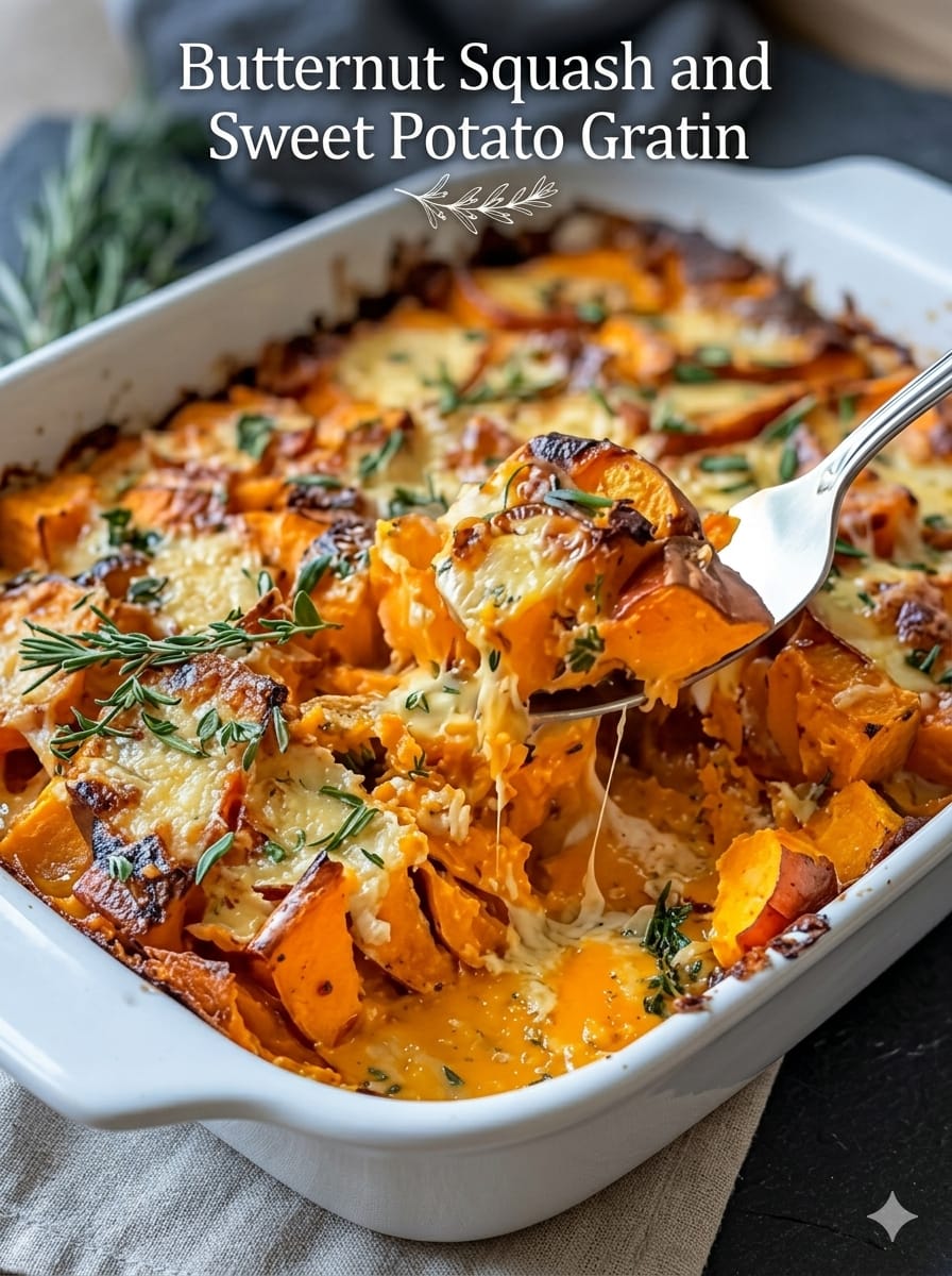 Butternut Squash and Sweet Potatoes Gratin is a warm, comforting dish that layers naturally sweet vegetables with a rich, creamy sauce and a golden, cheesy topping. Inspired by classic European gratins, this version brings a cozy, slightly sweet depth balanced with herbs, garlic, and a hint of nutmeg. It’s perfect as a holiday side or a hearty vegetarian main, offering both elegance and comfort in every bite.