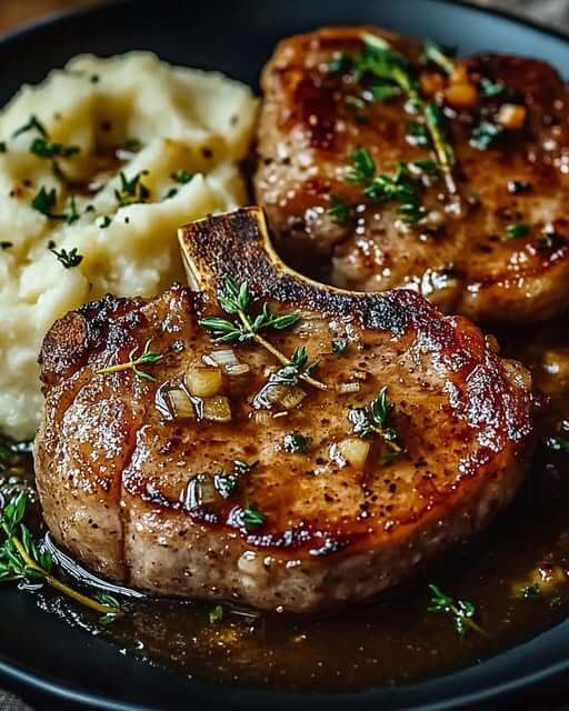 Enjoy your Buttery Garlic Pork Chops with Smooth Mashed Potatoes—a delicious, hearty meal that’s easy to prepare and packed with flavor! Let me know if you need any modifications or substitutions! 😊🍽️