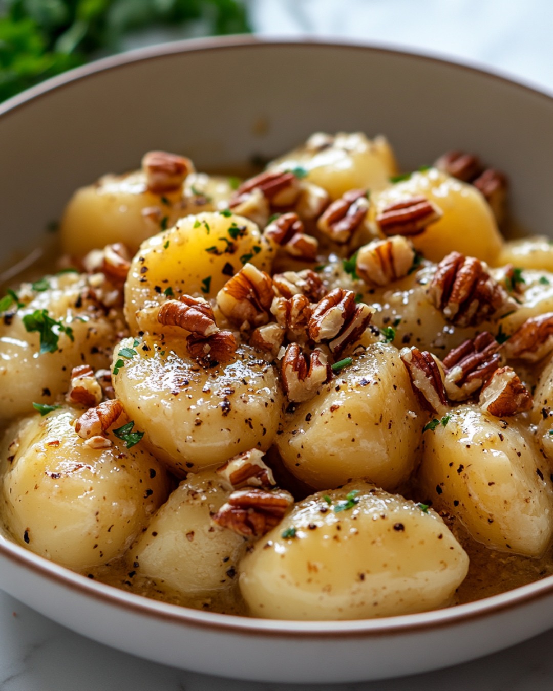 I had to admit that my “fancy” potato dish is just butter and garlic when my sister asked for it. Everyone will believe you’re a culinary genius if you add some roasted pecans. The tastiest tricks are sometimes the easiest!