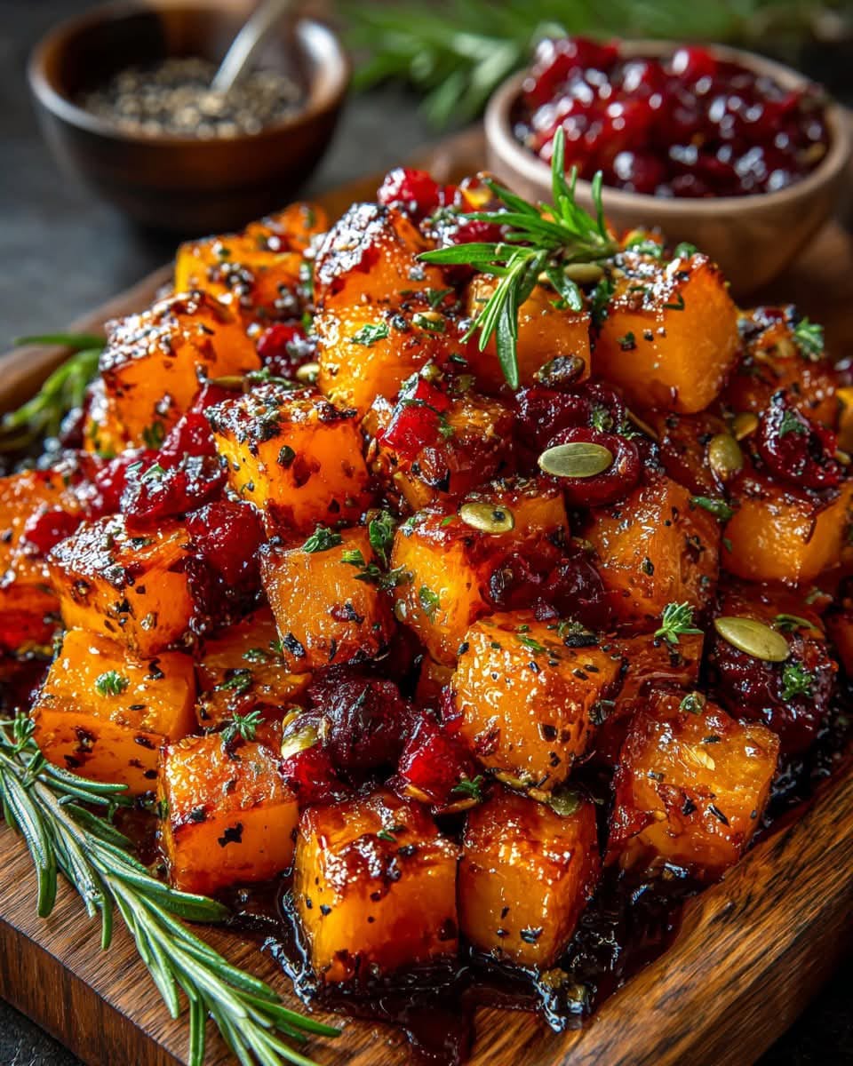 Caramelized Butternut Squash with Cranberry-Balsamic Glaze is a dish that delivers both comfort and elegance. The roasted squash provides a naturally sweet and tender base, while the cranberry-balsamic glaze adds a bright, tangy finish that keeps every bite interesting. Together, these flavors create a balanced dish that feels festive and satisfying.