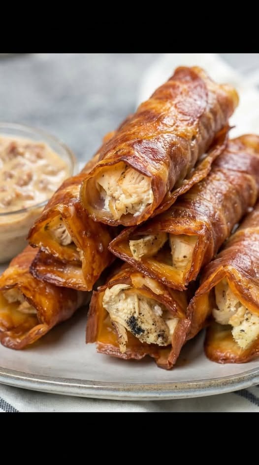 These crispy, juicy bacon-wrapped chicken roll-ups are a carnivore dream. Tender chicken stuffed with rich cream cheese, then wrapped in smoky bacon and cooked until golden and irresistible. High in protein, loaded with healthy fats, and ready in minutes — perfect for snacks, meals, or party platters.