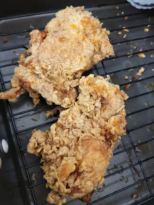 - Pat the chicken pieces dry with a paper towel. This helps the coating stick better and ensures crispiness.