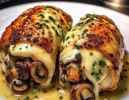 Cheesy Chicken Stuffed with Garlic Butter Mushrooms