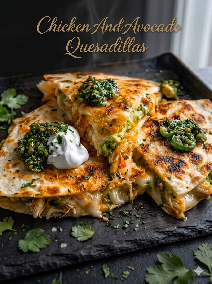 Chicken and Avocado Quesadillas are a quick, flavorful, and satisfying meal that combines crispy tortillas with creamy avocado, juicy chicken, and melted cheese. The addition of chimichurri and fresh lime elevates the dish with brightness and depth. Easy to customize and even easier to enjoy, this recipe is perfect for busy weeknights, casual dinners, or anytime you want something comforting with a fresh twist.