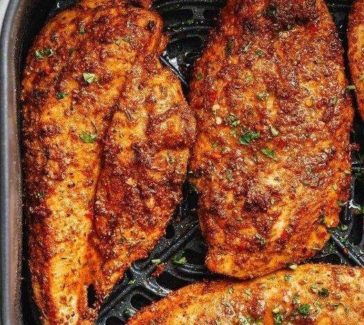 The exact cooking time may vary depending on the thickness of your chicken breasts and the specific model of your air fryer.