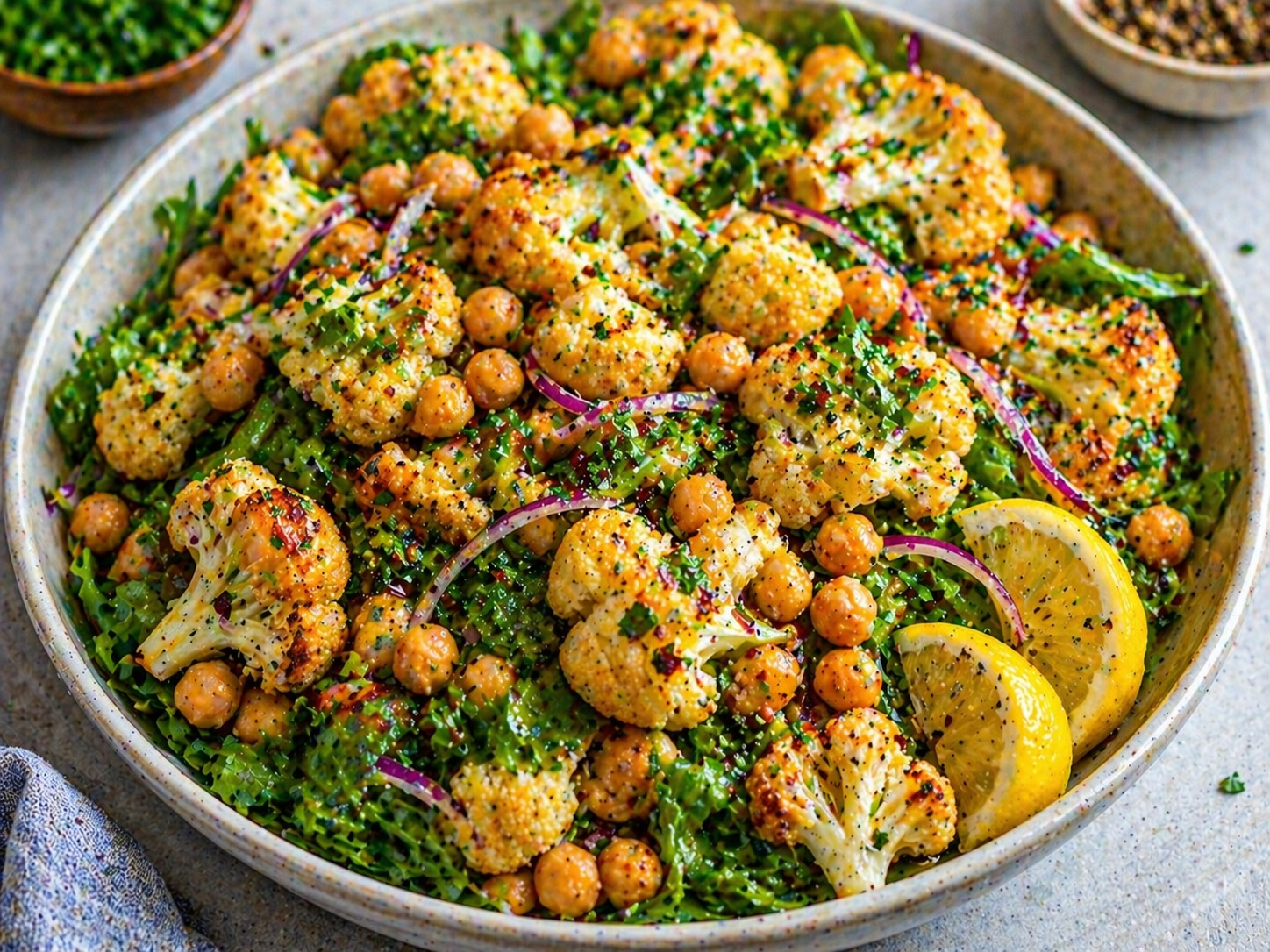 This Chickpea and Roasted Cauliflower Salad is a vibrant, nutrient-packed dish featuring crispy roasted cauliflower, protein-rich chickpeas, and a zesty lemon garlic dressing. It’s light, refreshing, and perfect as a main meal or a hearty side dish.