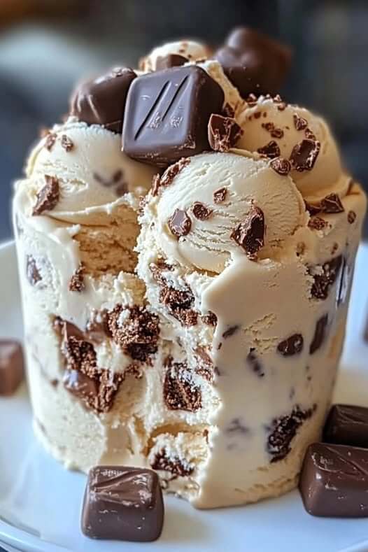 Description: This indulgent dessert combines the creamy, rich flavors of homemade ice cream with delicious chunks of cookie dough, Snickers, and Reese’s. It’s the perfect treat for anyone who loves a mix of chocolate, caramel, peanut butter, and a bit of nostalgia. The combination of textures—from crunchy candy pieces to smooth ice cream and chewy cookie dough—makes every bite a delight.
