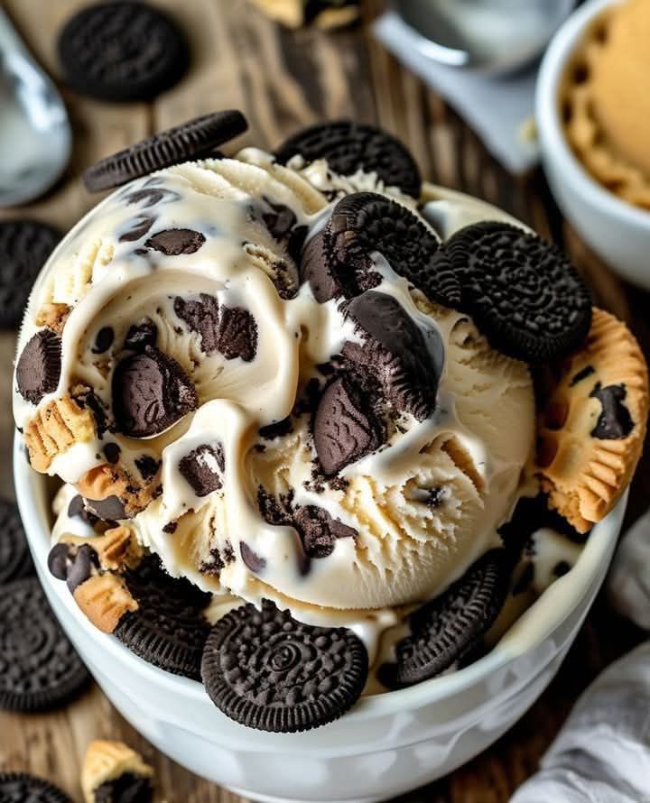 Cookies and Cream Ice Cream is a classic, rich, and creamy dessert packed with chunks of chocolate sandwich cookies (like Oreos). This homemade version is easy to make with just a few ingredients and delivers the perfect balance of smooth vanilla ice cream and crunchy cookie pieces.