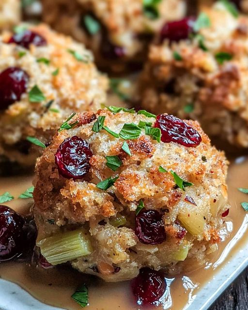 These Cranberry Stuffing Balls with Gravy are a delightful twist on traditional stuffing, combining savory herbs, sweet-tart cranberries, and a crispy golden exterior. Served with a rich, homemade gravy, they make a fantastic side dish for holiday meals or a comforting addition to any dinner.