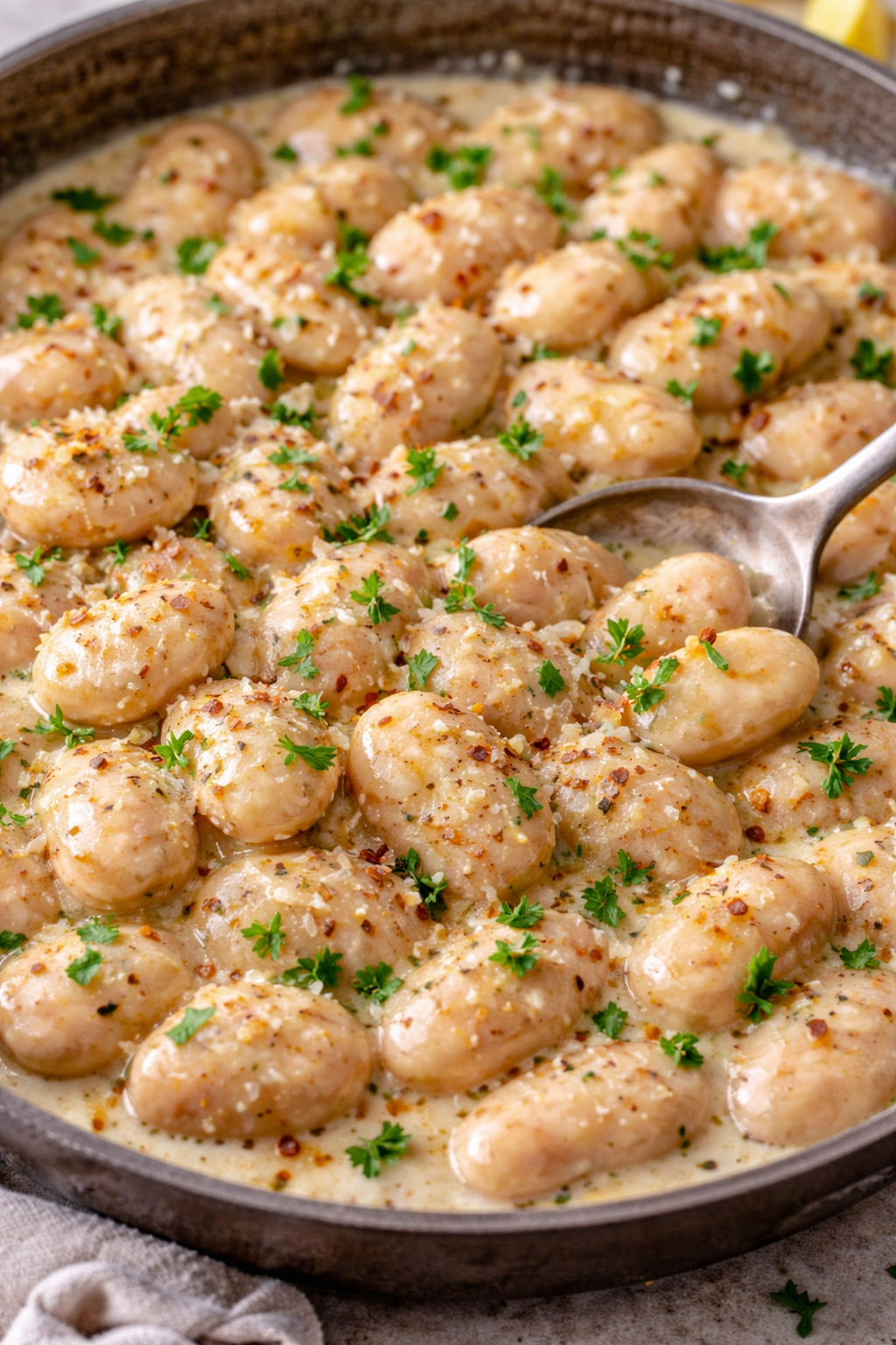 Creamy Butter Beans are a rich, comforting dish made with tender beans simmered in a silky garlic cream sauce. Finished with parmesan, herbs, and a hint of spice, this recipe is simple yet incredibly flavorful—perfect as a side dish or a cozy vegetarian main.