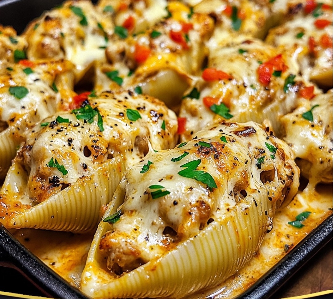 Creamy Cajun Chicken Stuffed Shells bring a spicy Southern twist to classic Italian comfort food. Juicy chicken, seasoned with bold Cajun spices, is blended with cream cheese, parmesan, and herbs, then spooned into tender pasta shells. Air frying melts everything together with crispy edges and a golden top — a weeknight winner with gourmet flavor.