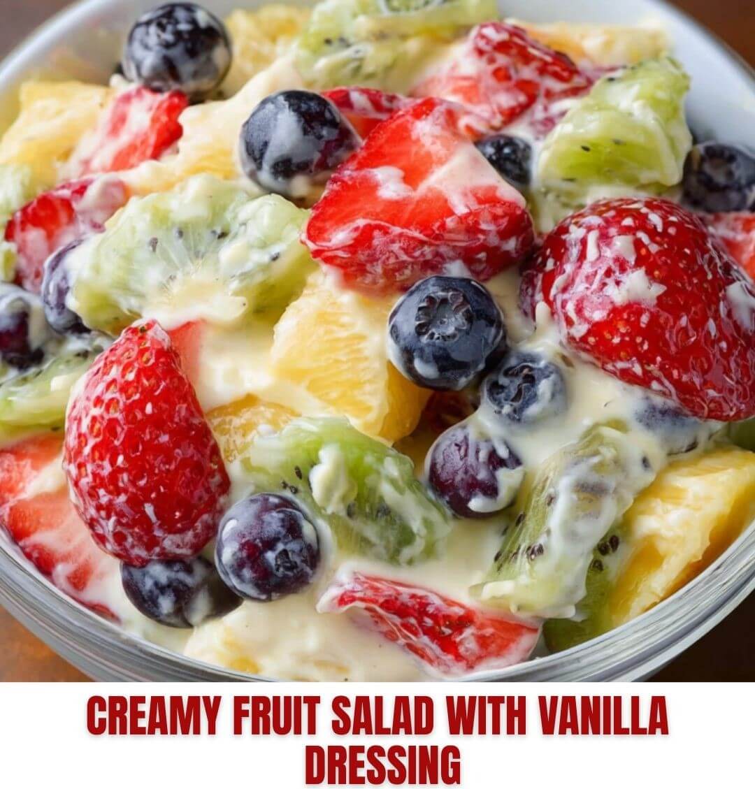 Creamy Fruit Salad with Vanilla Dressing is a versatile, easy-to-make dish that balances the natural sweetness of fresh fruits with the smooth, indulgent texture of a vanilla yogurt dressing. Its vibrant colors, refreshing taste, and creamy coating make it perfect for breakfast, brunch, or a healthy dessert. With countless variations—from tropical fruits to nutty or chocolatey twists—this fruit salad can be customized to suit any season or occasion, making it a staple recipe for both everyday meals and special gatherings.