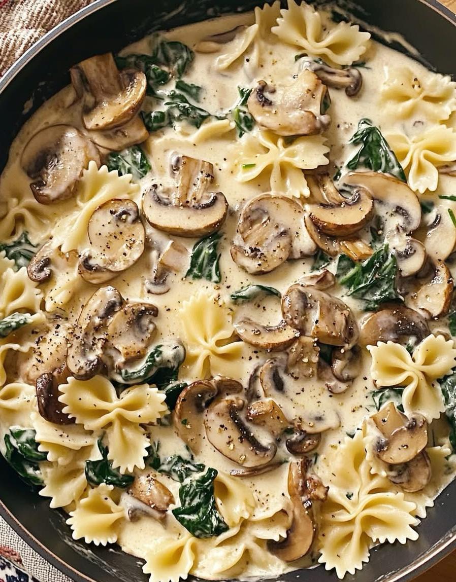 This creamy mushroom and spinach pasta is a perfect balance of rich flavors and comforting textures. The combination of earthy mushrooms fresh spinach and a velvety Parmesan sauce creates a dish that feels indulgent yet simple to prepare. Whether you enjoy it as a quick weeknight meal or serve it for a special occasion this pasta is sure to satisfy.