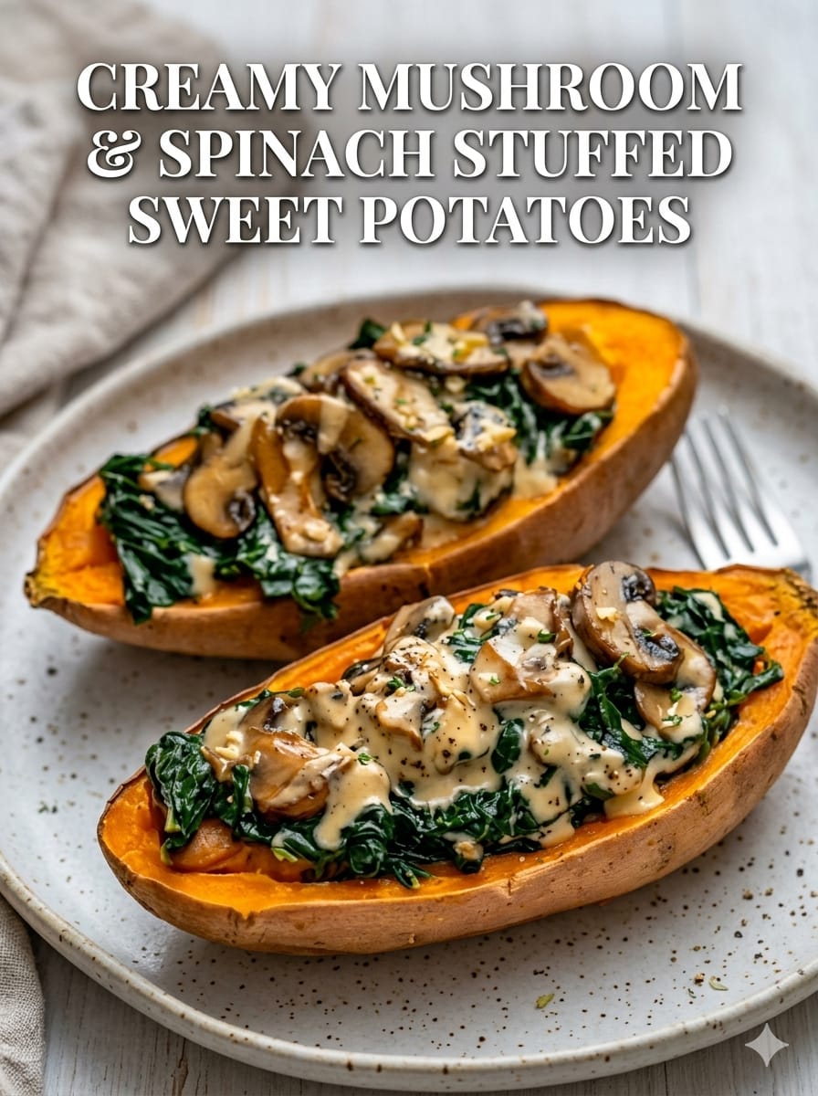 Creamy Mushroom & Spinach Stuffed Sweet Potatoes