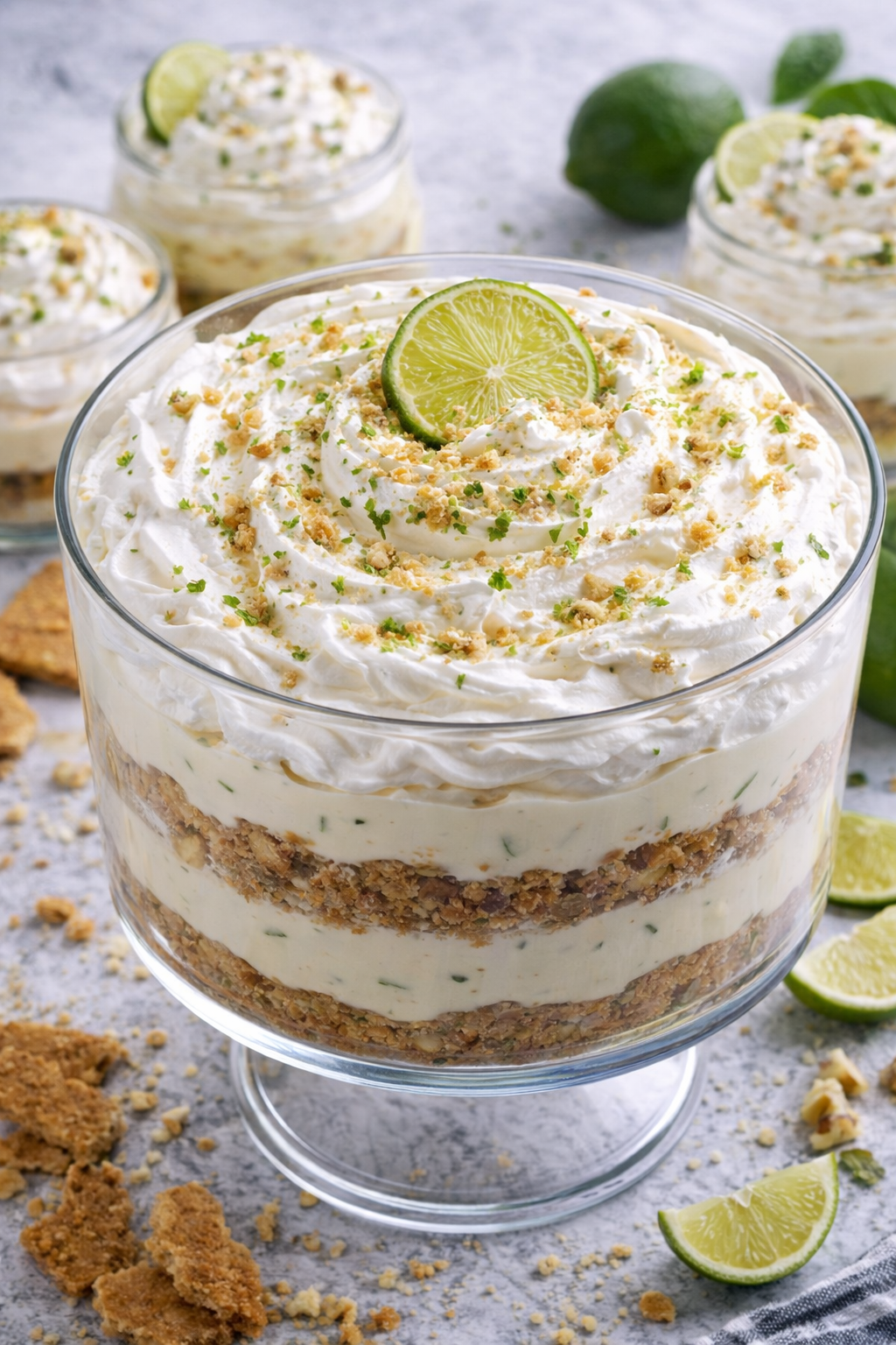 This Creamy No-Bake Key Lime Pie Trifle is a refreshing, indulgent dessert layered with buttery graham cracker crumbs, tangy lime cream, and fluffy whipped topping. It combines the bright citrus flavour of key lime pie with the light, airy texture of a trifle—making it perfect for summer gatherings, parties, or an easy make-ahead dessert.