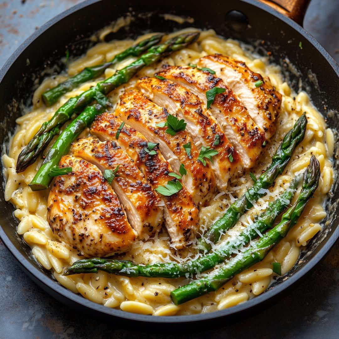 Creamy Parmesan Orzo with Chicken and Asparagus