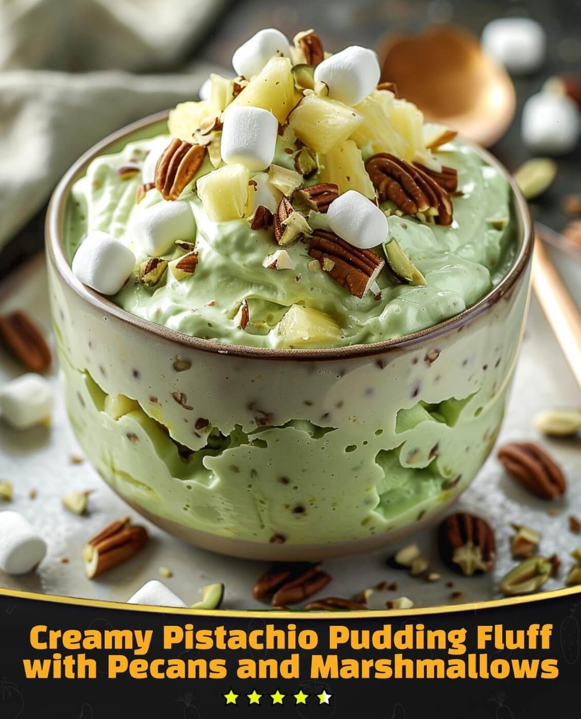 Creamy Pistachio Pudding Fluff with Pecans and Marshmallows