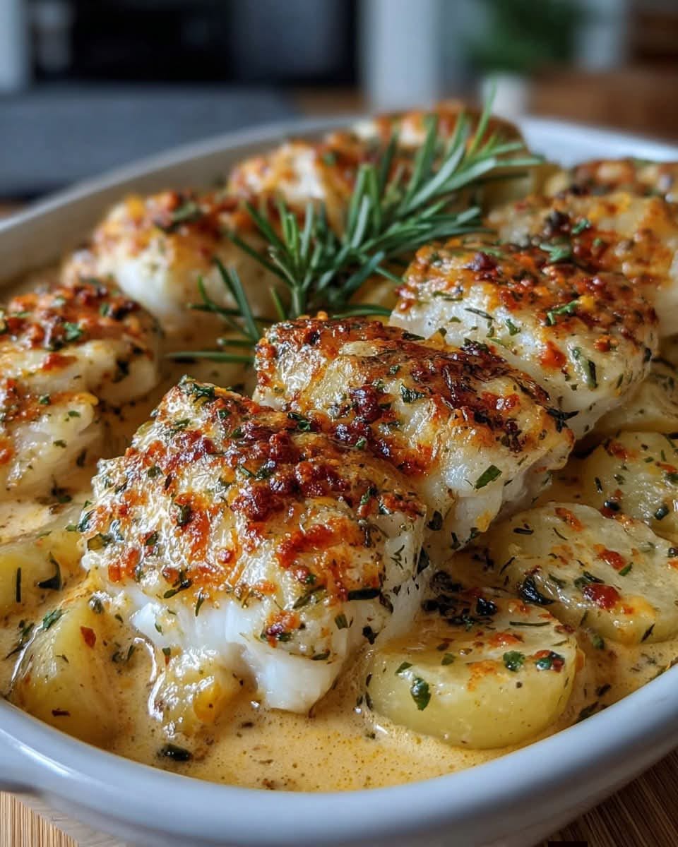 Creamy Rosemary Cod & Potatoes is a comforting, all-in-one dish that brings together simple ingredients in a rich and flavorful way. The tender fish, creamy herb sauce, and soft layered potatoes make it a satisfying meal that feels both homey and a little special.