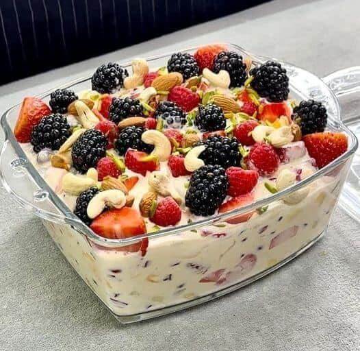 This creamy vegan fruit salad is a refreshing, naturally sweet treat that’s perfect for any occasion. Loaded with juicy berries, soft bananas, crisp apple, and finished with a light whipped cream coating, it’s both satisfying and easy to make. The addition of crunchy dry fruits gives it a beautiful texture and a boost of nutrients.