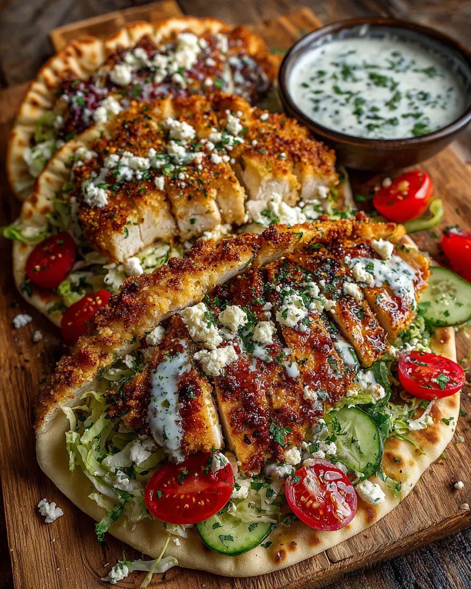 Crispy Baked Hot Honey Feta Chicken Pita with Garlic Sauce Drizzle