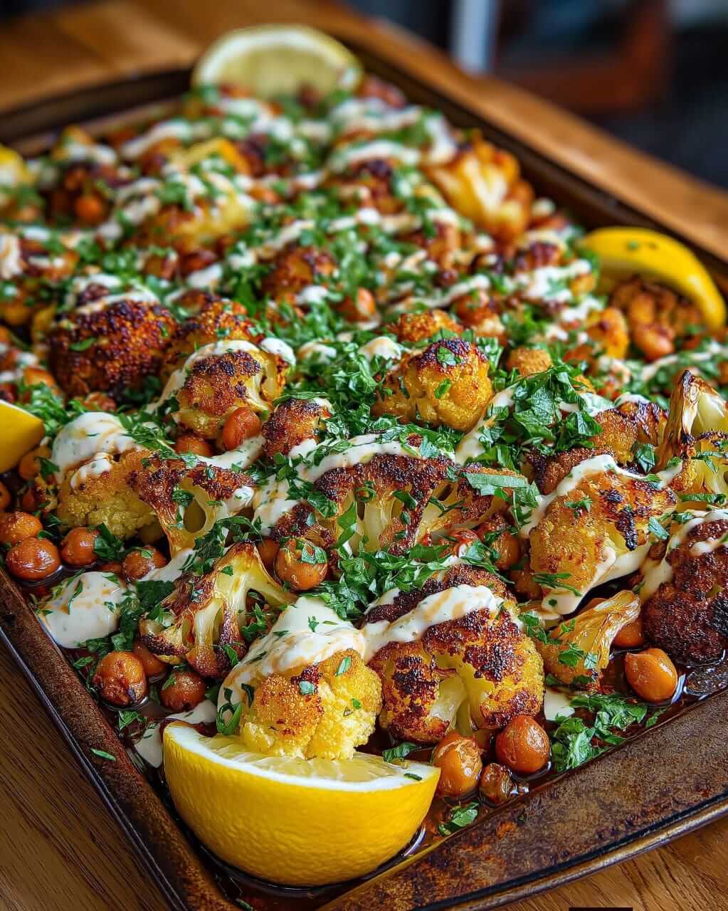 Crispy Chickpea & Cauliflower Sheet Pan with Tahini Honey Drizzle