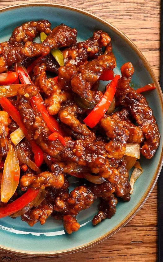 Crispy chilli beef from the Chinese: Savour Crispy Chilli Beef, a popular Chinese stir-fry meal that will ignite your taste buds with its robust flavours and crispy texture! Tender beef strips marinated in a sweet and spicy combination are combined with a satisfyingly crispy coating achieved by a superb balance frying technique in this delicious dish. Each mouthful bursts with an enticing balance of sweet, sour, and spicy flavours, paired with ginger, garlic, hot chillies, and a touch of sauce. Crispy Chilli Beef, a mainstay of Chinese cooking, is a delicious treat that will leave you wanting more.
