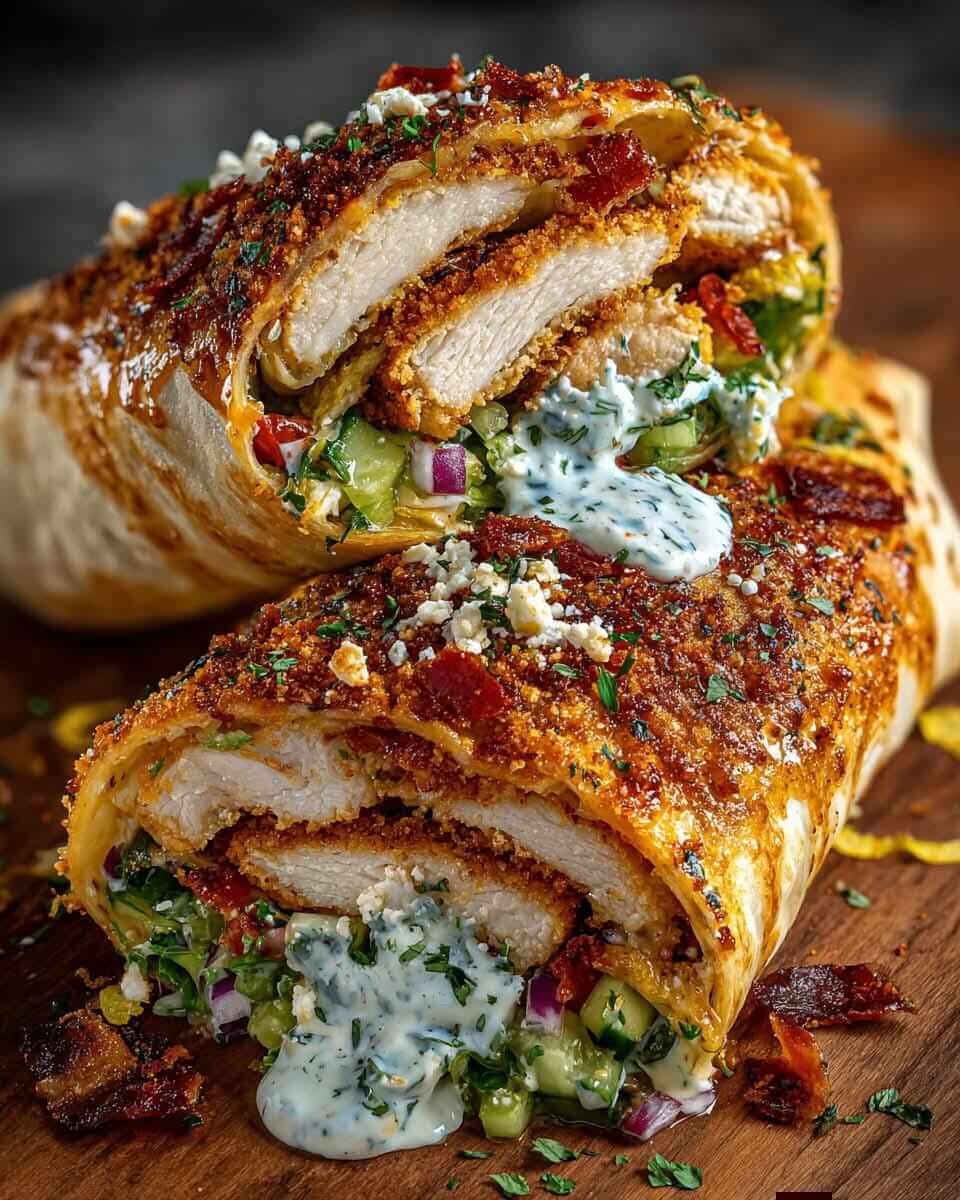 Crispy Hot Honey Feta Chicken Wrap with Lemon Garlic Yogurt Drizzle