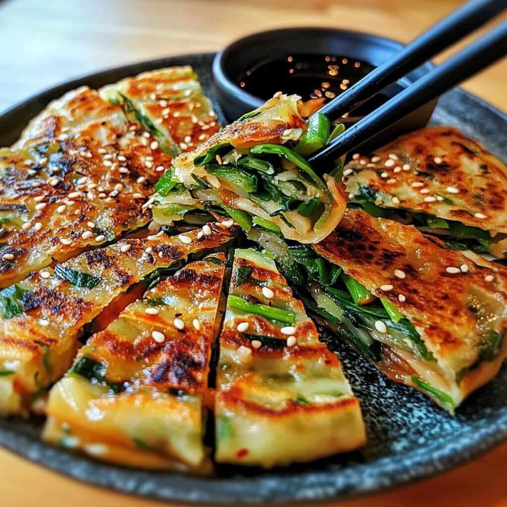 Crispy savory and insanely satisfying Korean scallion pancakes are a total crowd-pleaser. Whether you’re enjoying them as a snack a side dish or part of a Korean-inspired meal they’re quick to make and even quicker to disappear. Don’t skip the dipping sauce — it ties everything together beautifully